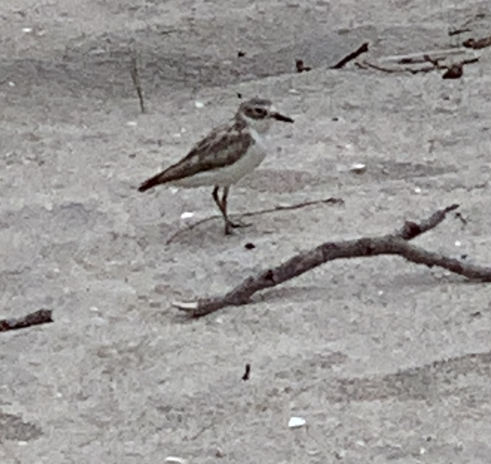 This, ladies and gentlemen is Charadrius Obsucurus , The New Zealand Dotteral or the New Zealand Plover*. This is the mother of one growing but still fluffy chick and she guards her nest (a mere scrape in the sand) assiduously, running ever closer to you as you approach to gain your attention and distract from her little one. She has a mate and another male bird in proximity. These are the rarest birds I have ever seen in the wild because I have seen 4 of the 1,700 of these birds in the whole of the world. They are seriously, seriously endangered.