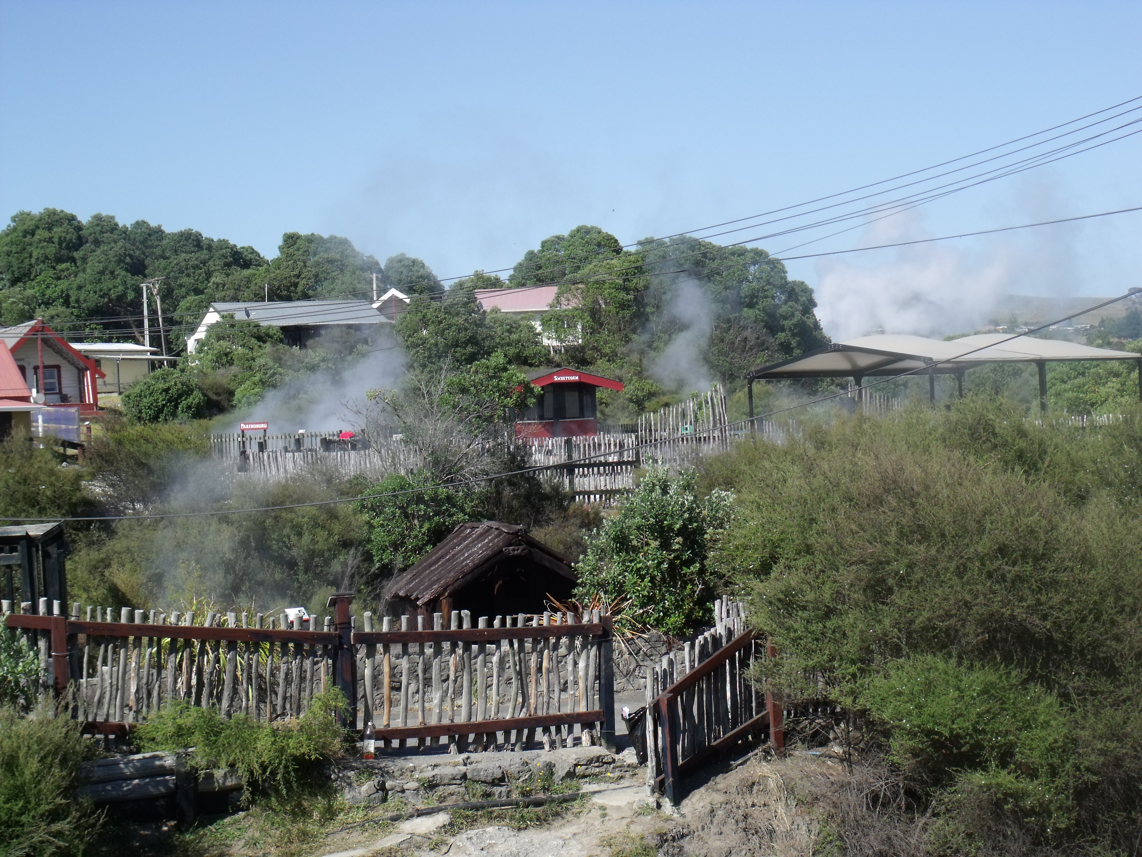 Rotorua is a great place, very tourist orientated and the gateway to many, many activities from paragliding to mountain biking. We did none of that, thank you very much, we went for the cultural activities. Rotorua is called the Rota Vegas in NZ, it it shares many of the same characteristics with long roads of shops, bars and restaurants but it is much, much more manageable. The cultural entertainment is mostly along the same Vegas lines but we chose the most authentic we could find and spent the morning in a working Maori Village called Whakarewarewa where the peoples of the local tribes have loved for centuries.