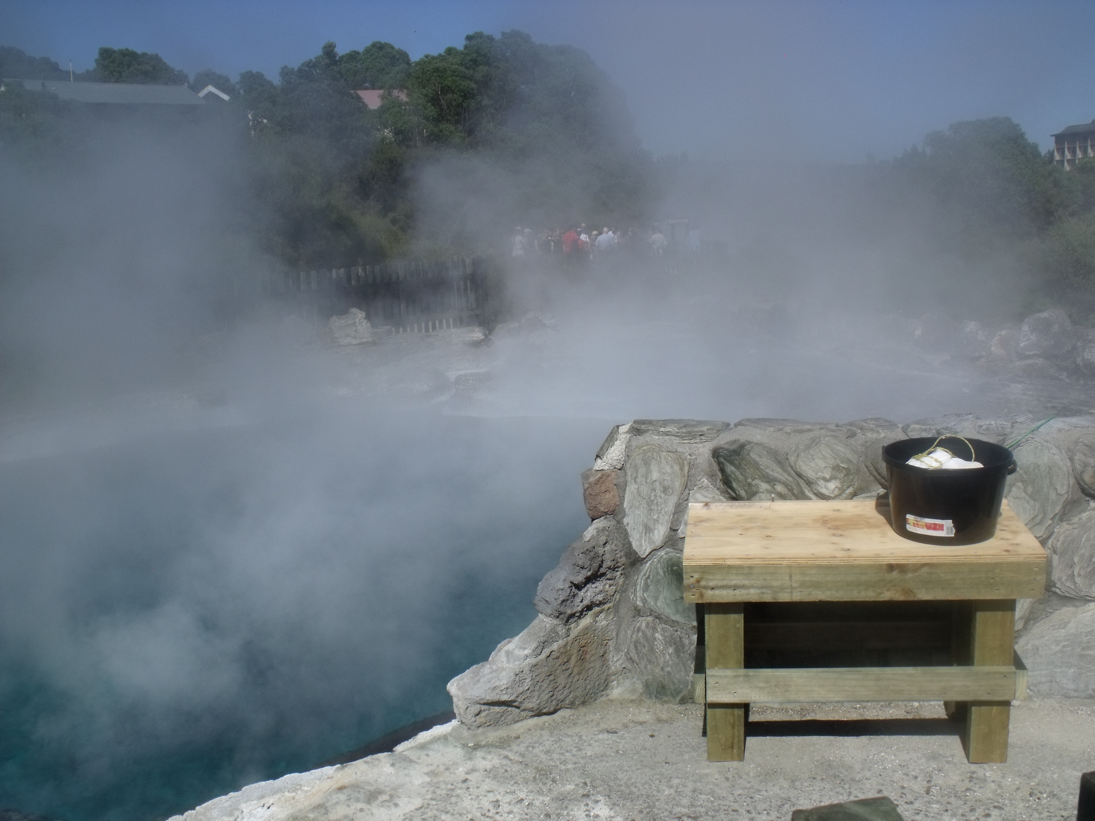 Welcome to Rotorua and to the park in the middle of the town with its mud pools, bubbling ponds and strange sulphurous smell that pervades everywhere and everything.