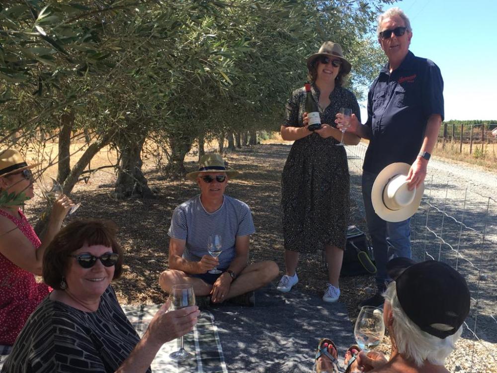 and then, guess what? Oh, I bet you got there before us. Yep, Claudia had a few samples with her. So the seven of us, Claudia, the two of us, our hosts and our temporary Canadian neighbours all lounged under the olive trees and had a personal and wonderful wine tasting from a real expert!