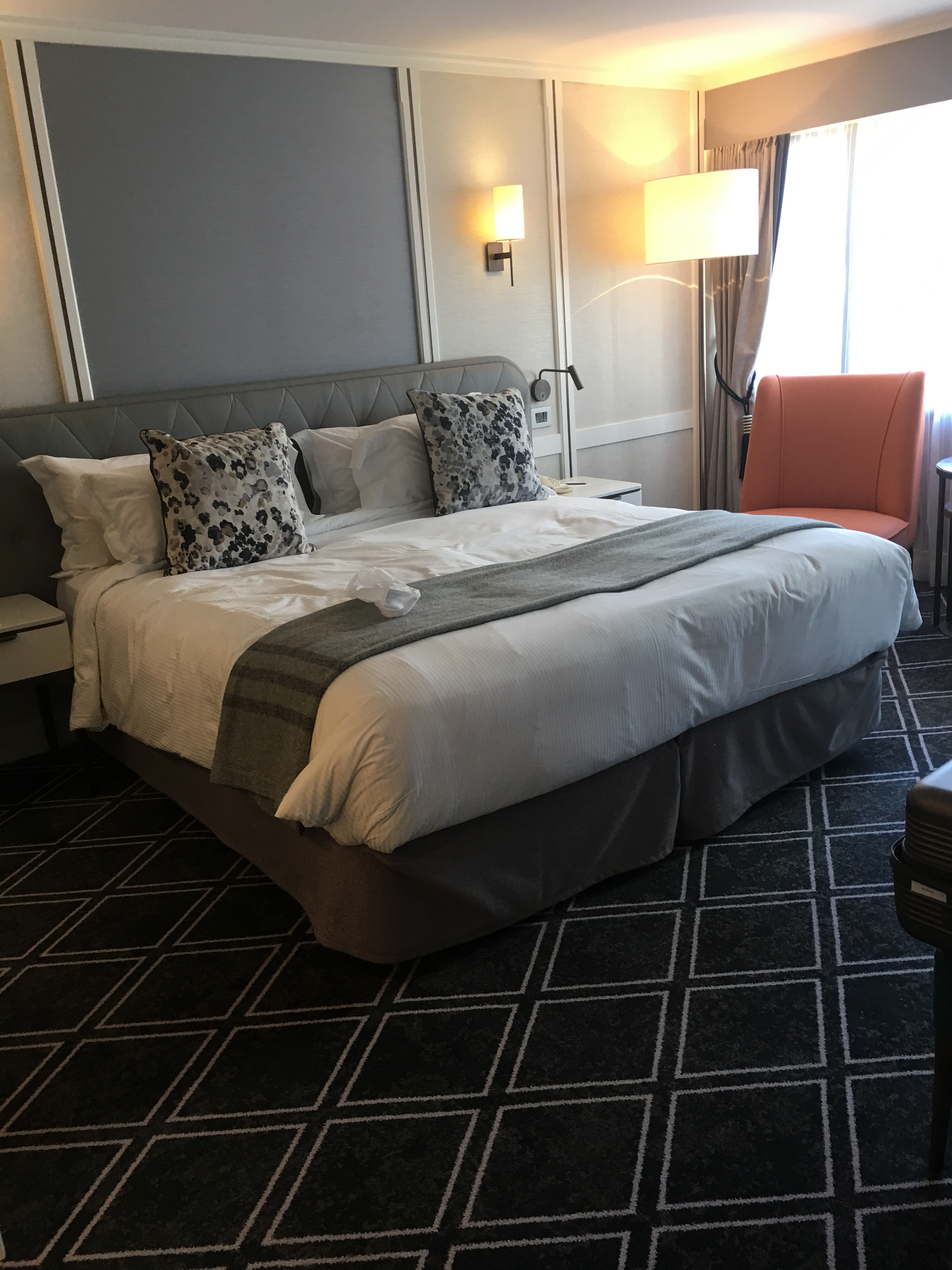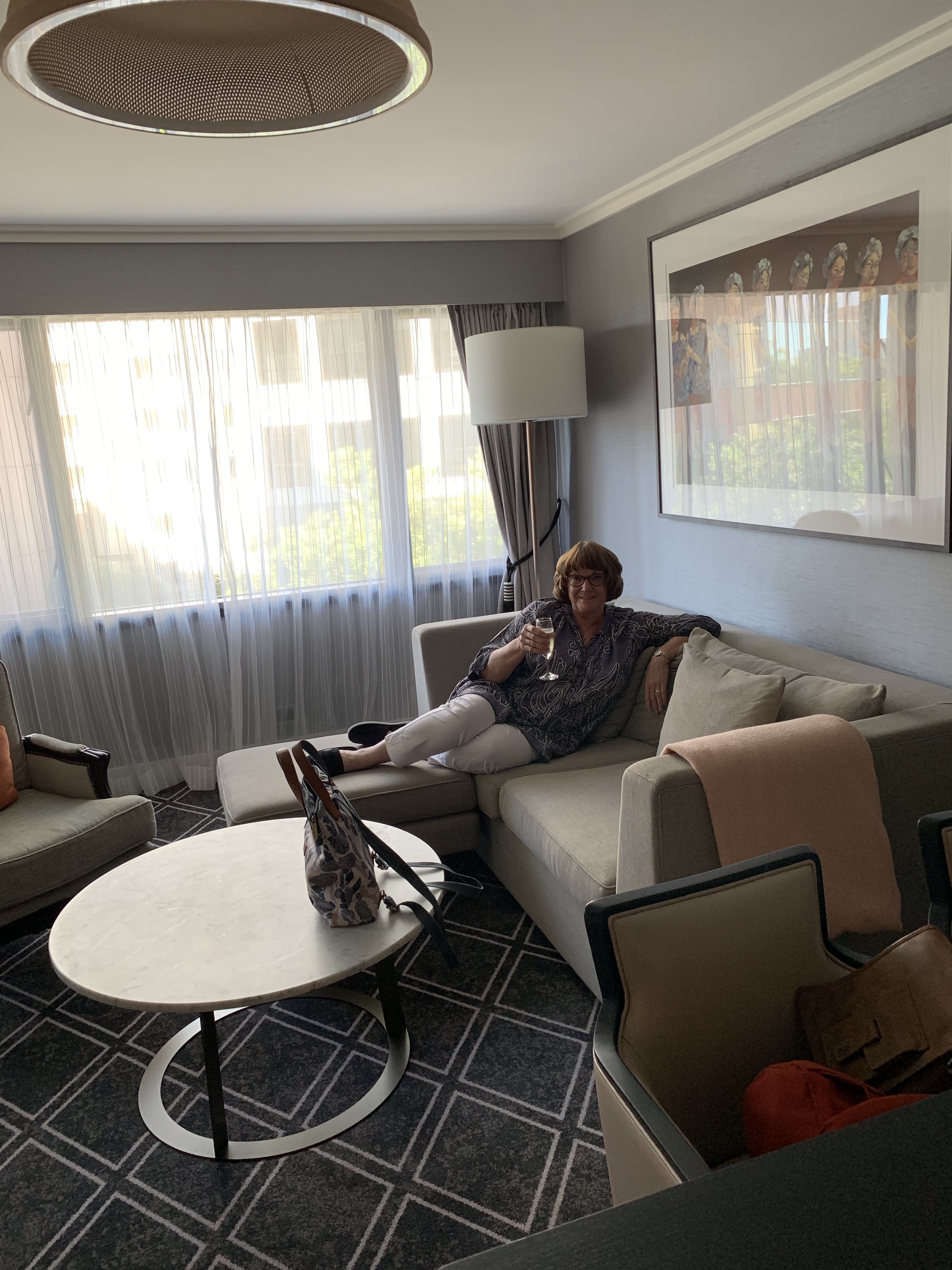 Now, for some weird reason the hotel got confused and seemed to think, silly things, that it was Wendy’s birthday. I have no idea who would have told them that. So we were royally upgraded to a suite, free use of the spa, breakfast thrown-in, free use of the executive lounge and a bottle of bubbly. The room itself was luxurious and the bubbly excellent: