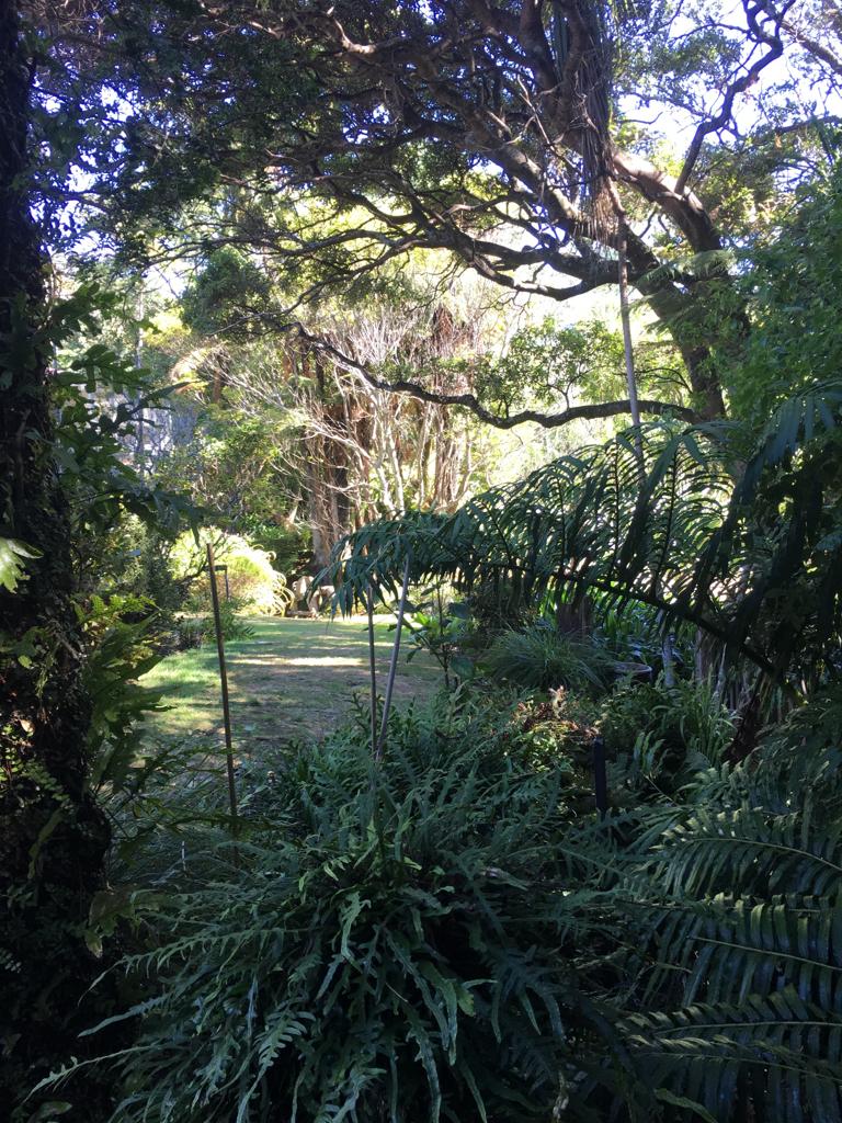 How on earth could we improve upon that. New Plymouth has many fine parks and gardens but Wendy and I were drawn to a tiny advert for the Te Kainga Marire, a private garden at 15 Spencer Street out in the suburbs. I think after the art fest of the morning we were just seeking something a little more peaceful. Well, what a find. Mind you, Monty Don had discovered it several years ago and it was featured in his series “Around the world in 80 Gardens” as we discovered from our new bestie Zelda, who built, owns and maintains this idyllic place – “a gem of middle earth” as their publicity states.